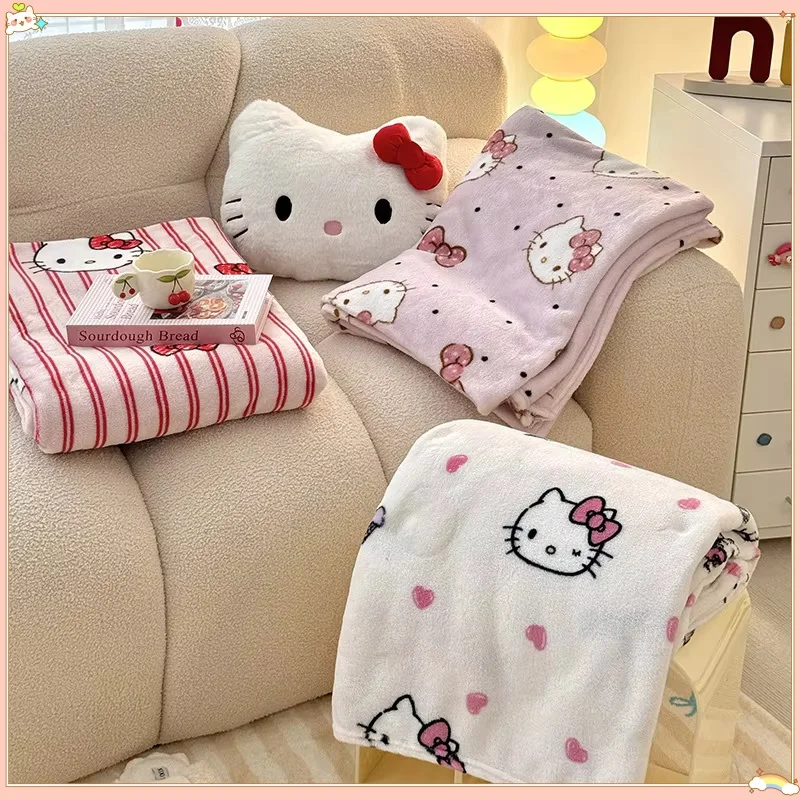 Hello Kitty Cartoon Kt Cat Cute Double-Sided Milk Velvet Blanket Travel Shawl Blanket Office Nap Sofa Warm Velvet Blanket Gift