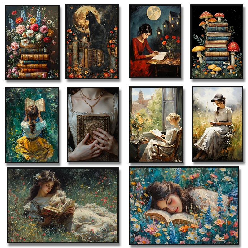 Vintage Elegant Lady Reading Book Reading Woman Canvas Painting Poster Cottagecore Dark Academia Girl Room Home Decor Cuadros  Read more