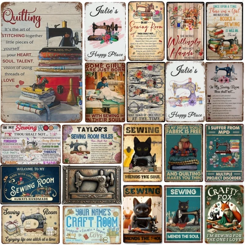 Vintage Metal Tin Poster Sewing Room Metal Tin Signs Posters Plate Visual Wall Art For Sewing Lovers Home Sewing Room Wall Decor  Read more