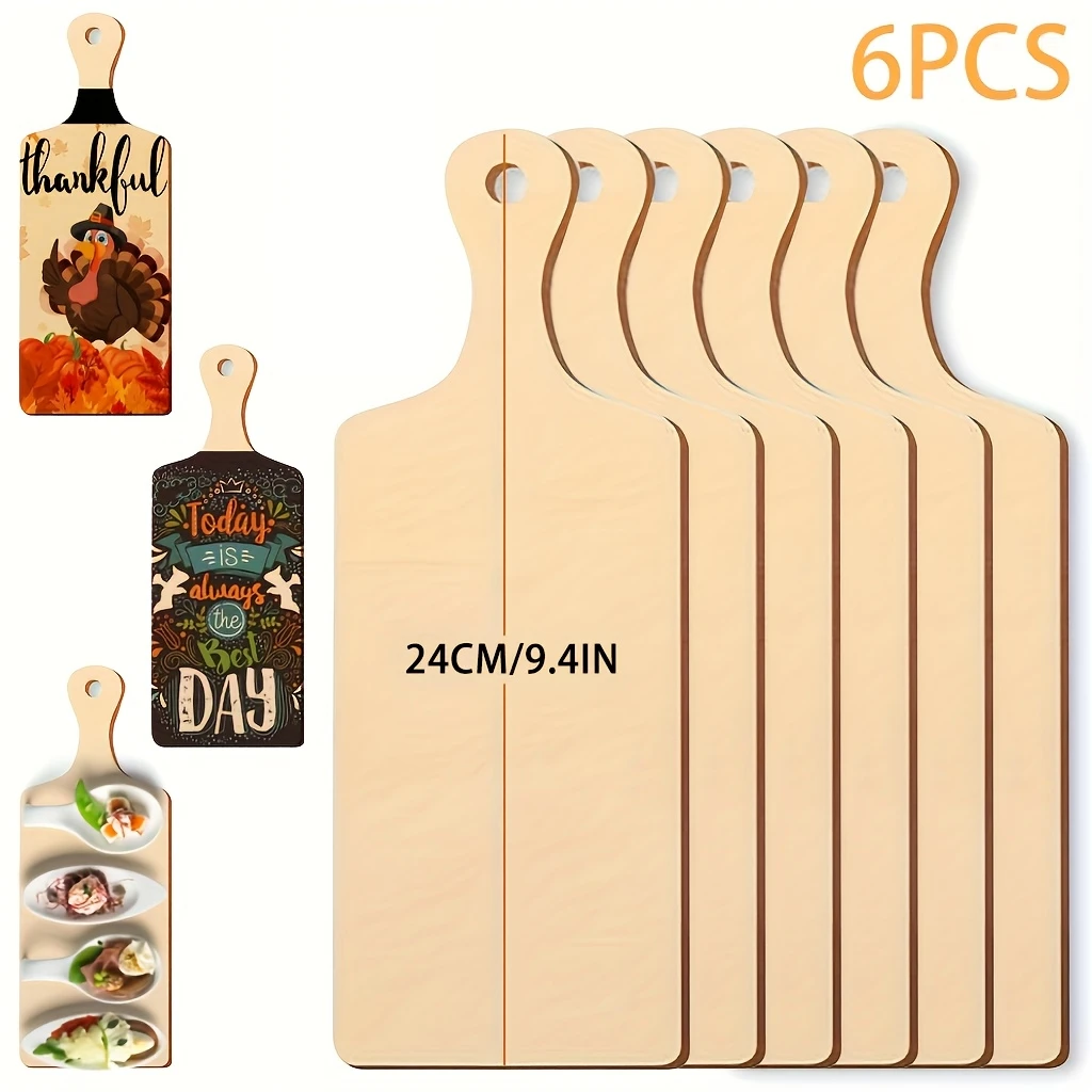 6pcs Mini Wooden Cutting Board with Handle Small Chopping Board Craft Wooden Paddle Board for DIY Festival Kitchen Home Decor