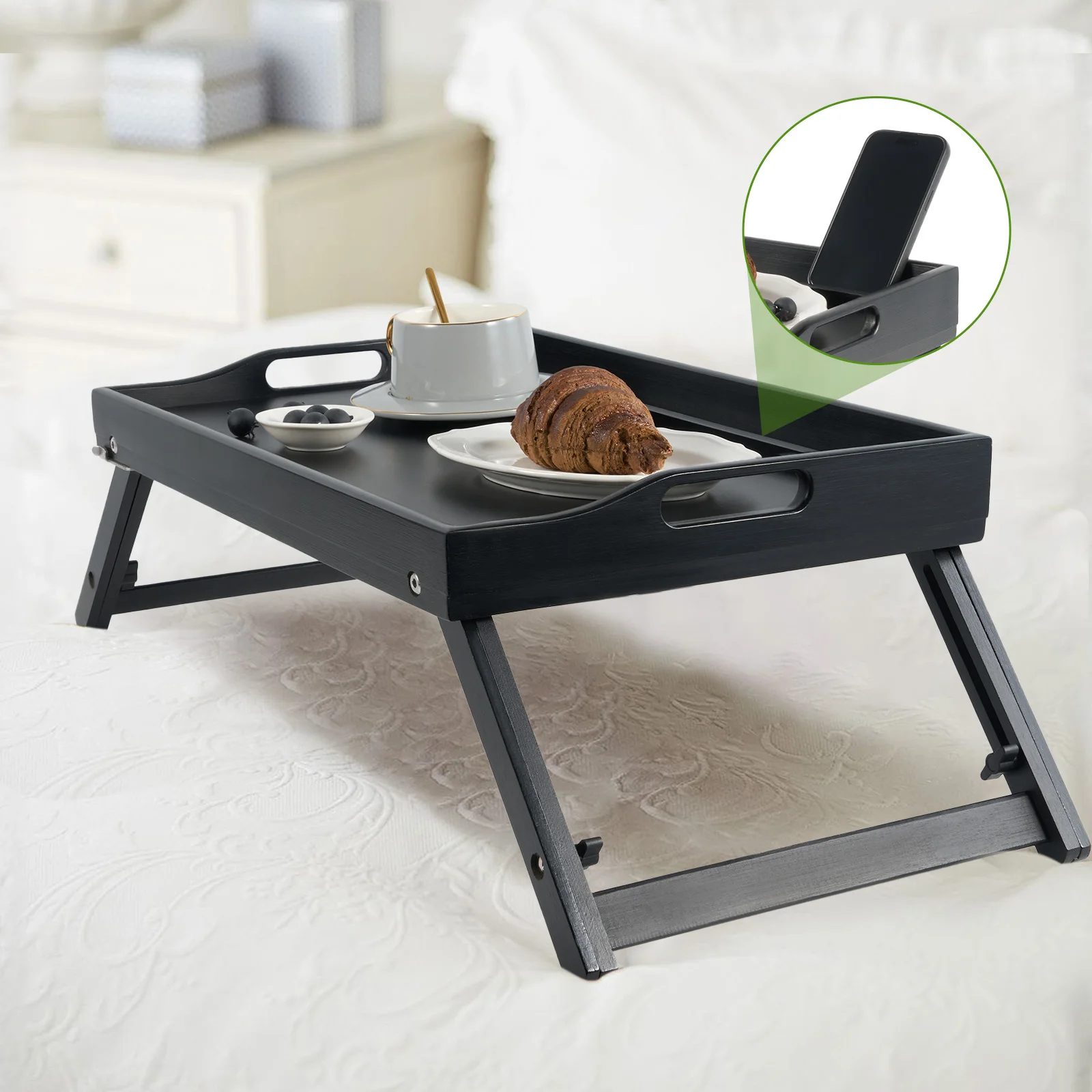 Bed Tray Table with Handles Folding Legs, Bamboo Breakfast Food Tray with Media Slot, Use As Platter, Laptop Desk, Snack, TV Tra