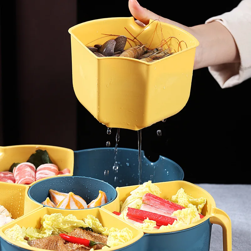 Multi Functional Drain Basket Hot Pot Platter With 6 Compartments And Handle, Household Fruit Plate, Vegetable Washing Basket