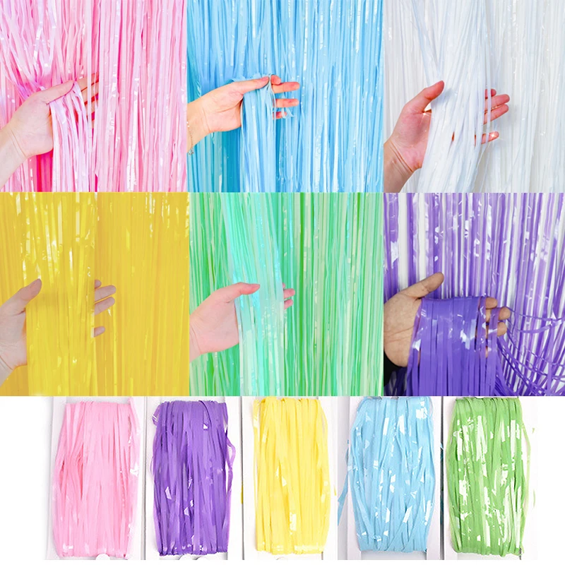 Pastel Color Fringe Foil Curtain Macaron Curtains Photo Booth Backdrop Background for Wedding Birthday Baby Shower Party Decors