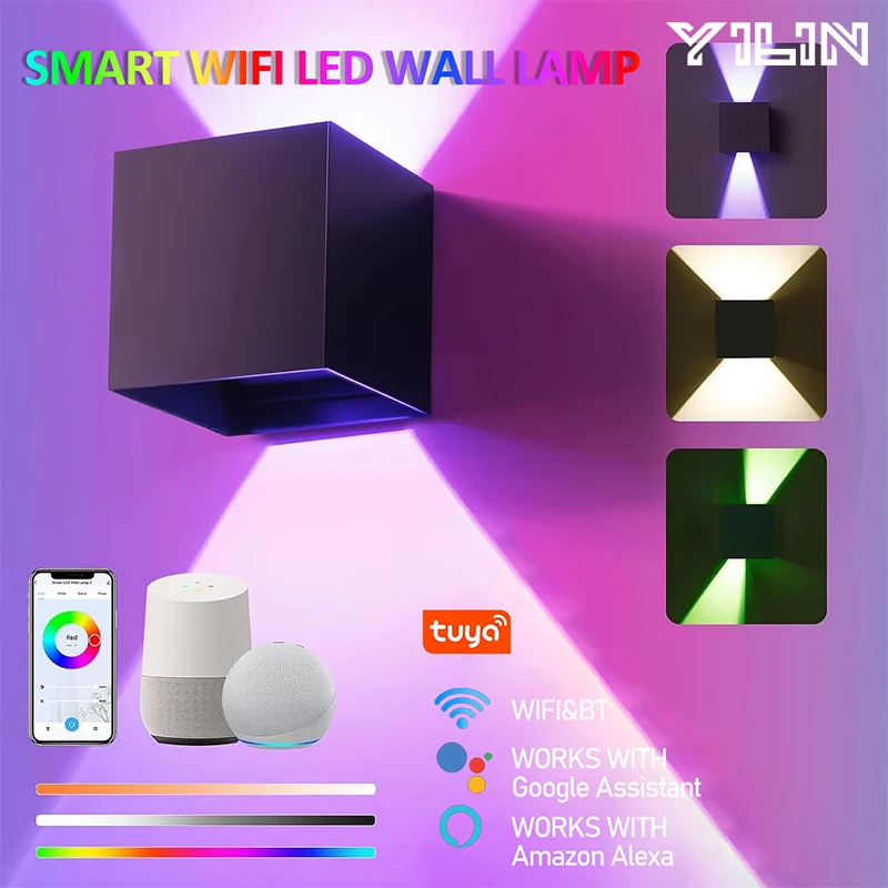 WIFI Smart Outdoor LED Wall Lamp IP65 Waterproof Aluminum Cube Light RGBCW Color Change Tuya APP Remote Control Work With Alexa