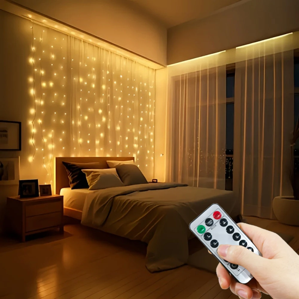 Holiday LED Curtain Lighting String USB 8 Modes Christmas New Year Party Lights Home Wedding Birthday Venue Decor Aesthetic