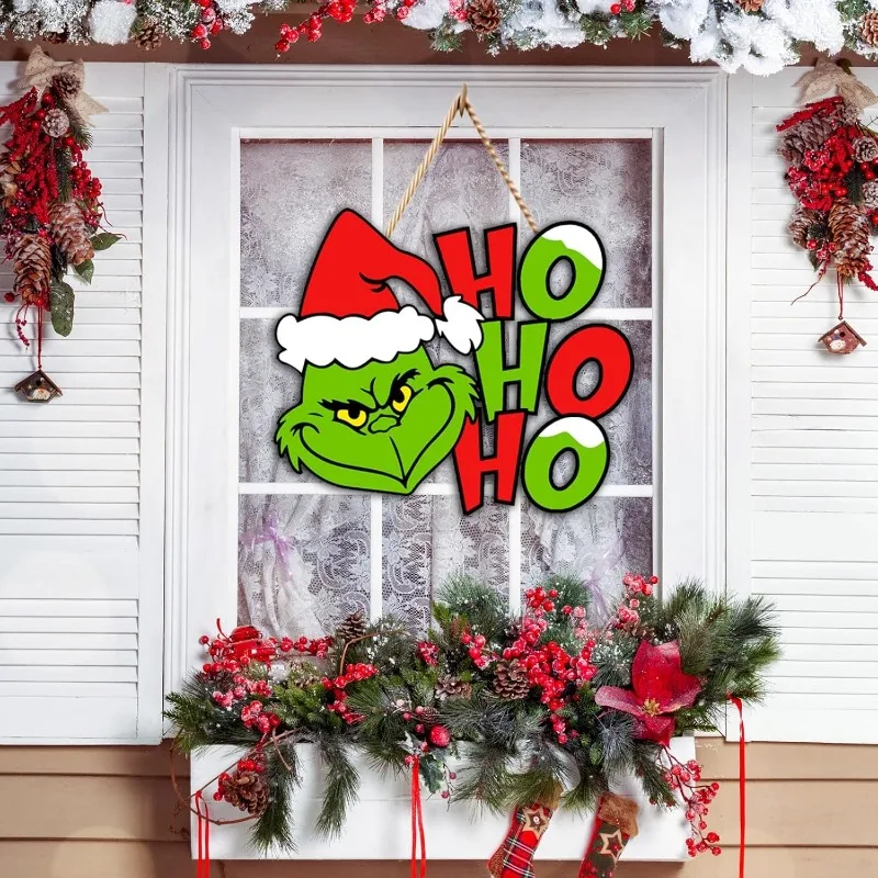 Christmas Wood Sign Hanging for Front Door Decor - Xmas Holiday Wooden Hanger, Outdoor Wall Wreath Decor for Family Kids Party