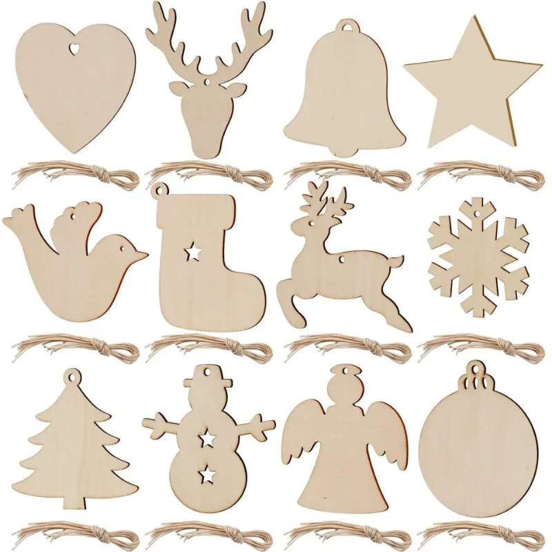 50Pcs Wooden Pendants Ornaments Hanghing Snowflake DIY Wood Crafts Xmas Tree Home Decor Christmas Party Decorations Accessories  Read more