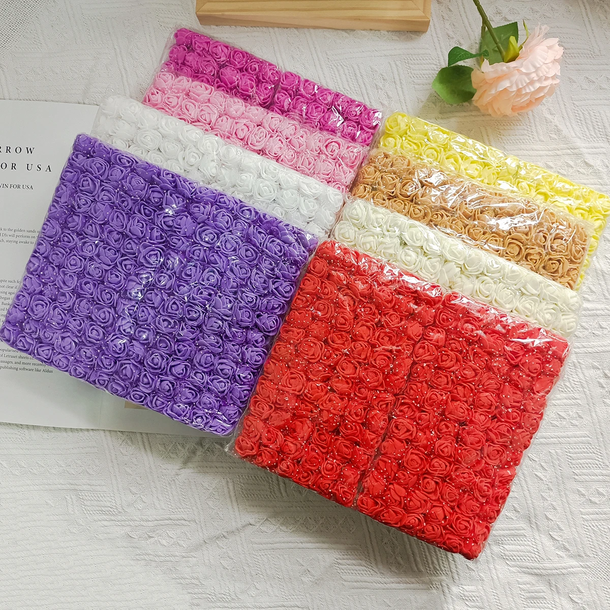 144 Pieces 2cm Foam Mini Teddy Bear of Roses Decorative Home Decor Accessory Wedding Christmas Garland DIY Artificial Flowers