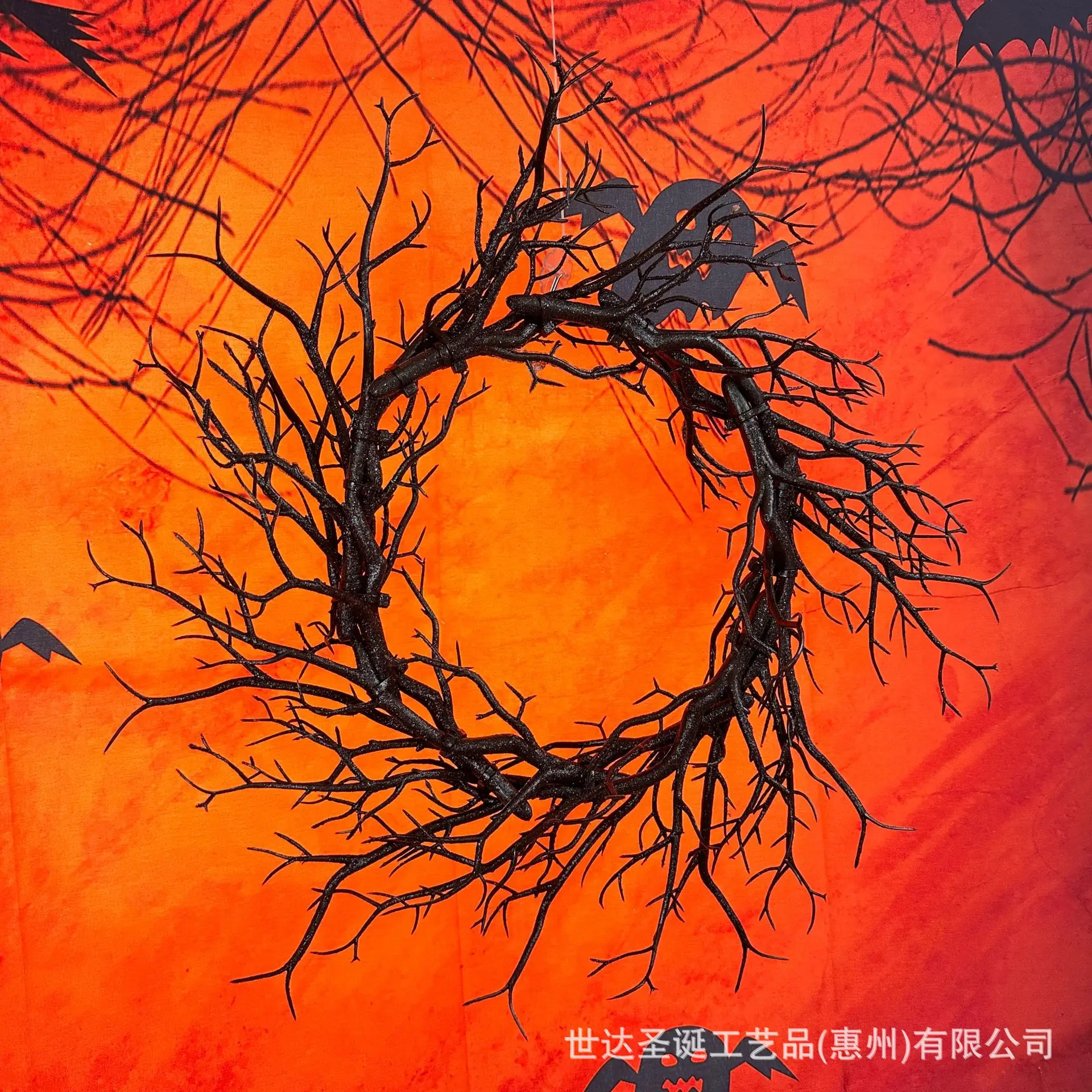 Halloween Wreath Simulation Black Branch Wreaths With LED Light 42CM For Door Flower Garland Home Party Halloween DIY Decoration
