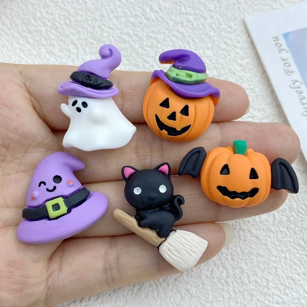 10Pcs New Cute Resin Cartoon Halloween Collection Series Flat Back Ornament Jewelry Making Hairwear Accessories