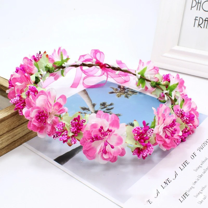 New Spring Bohemian bride Rose Crowns Wreath Beach Hawaii Floral Garland Romantic Faux Rose Wedding Wreaths New Flower Headband  Read more