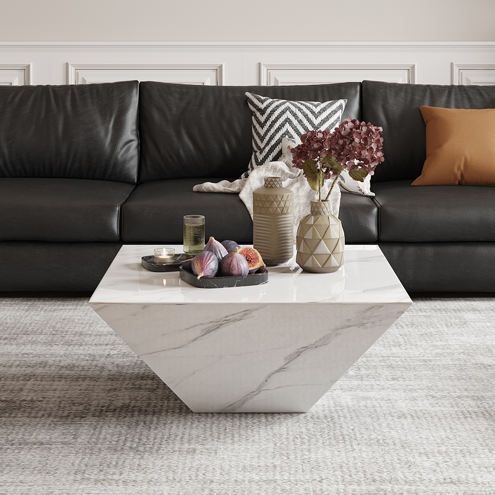 Trapezoid Coffee Table, Sintered Stone, Modern Minimalist Style, Fully Assembled, Ideal for Living Room or Office, 31.5"
