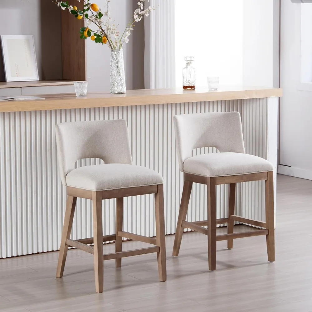 Bar Stools Set of 2, Upholstered Counter Height with Wood Legs, Modern Design for Kitchen Island or Dining Room Use  Read more