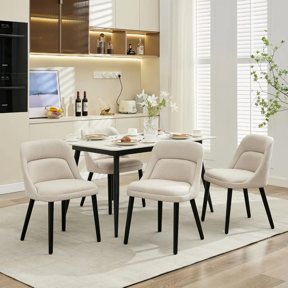 Dining Chairs Set of 4 Modern Fabric Dining Room Chairs Upholstered Dining Chairs with Thick Cushions, Contemporary Seating w/Me