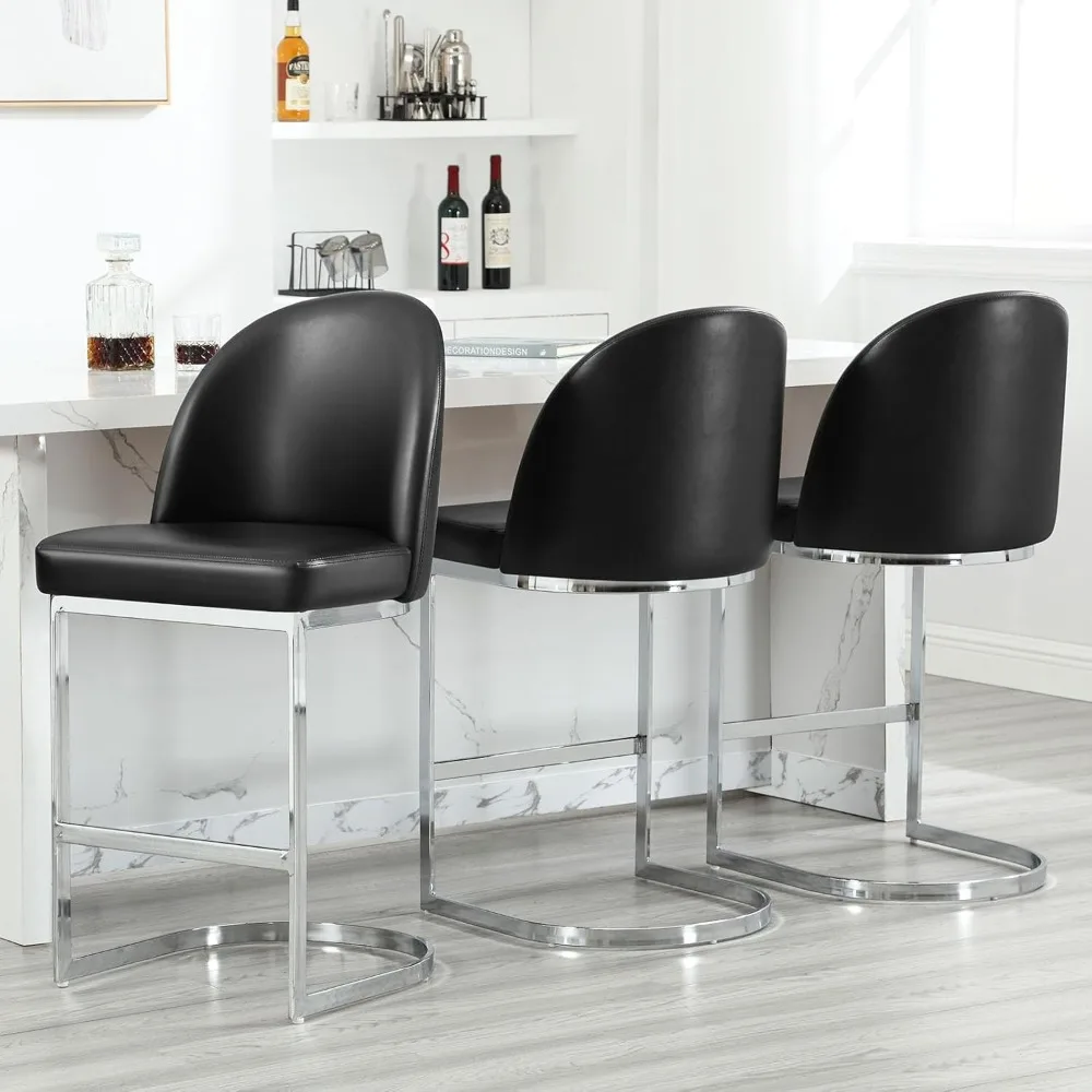 Counter Height Bar Stools Set of 3, 26" Upholstered Faux Leather Counter Stool with Scalloped Back and Metal Frame,   Read more