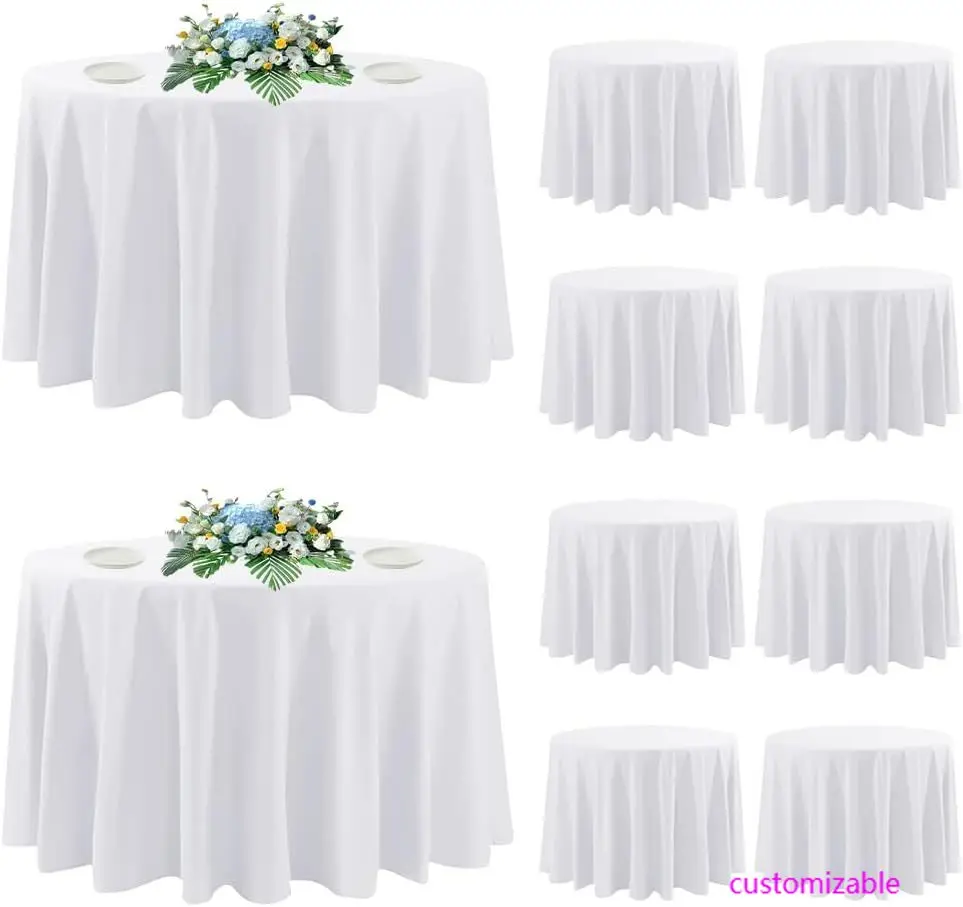 10 Pack Round Tablecloth White 120 Inch, Stain Resistant and Wrinkle Polyester Table Cloth, Washable Table Cover