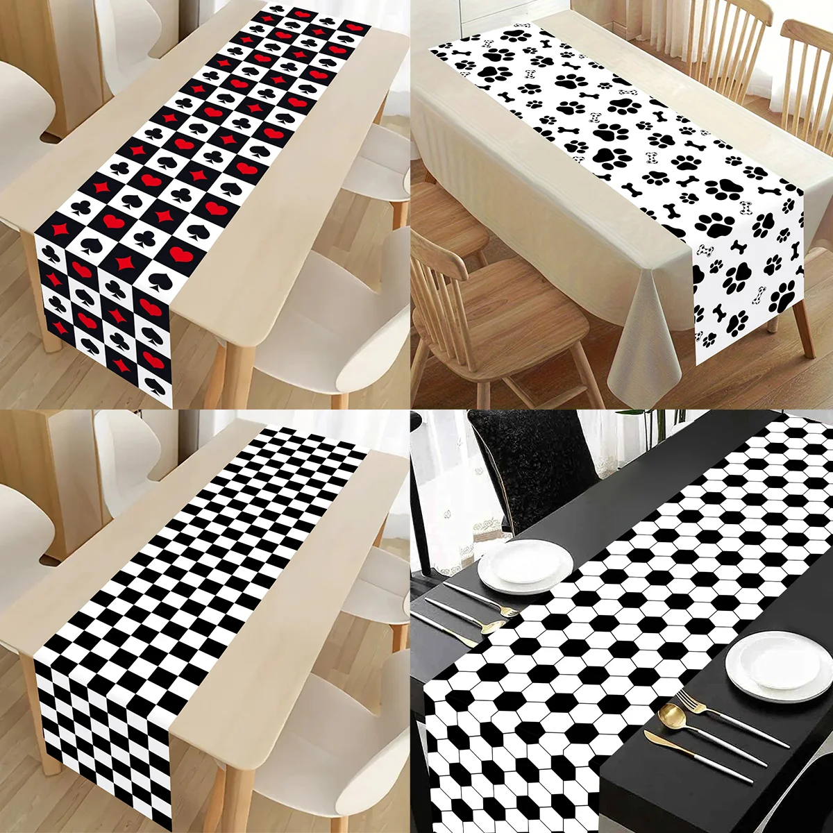 1pc Black White Checkered Table Runner Soccer Party Polyester Table Cover for Kitchen Home Birthday Party Picnic Supplies