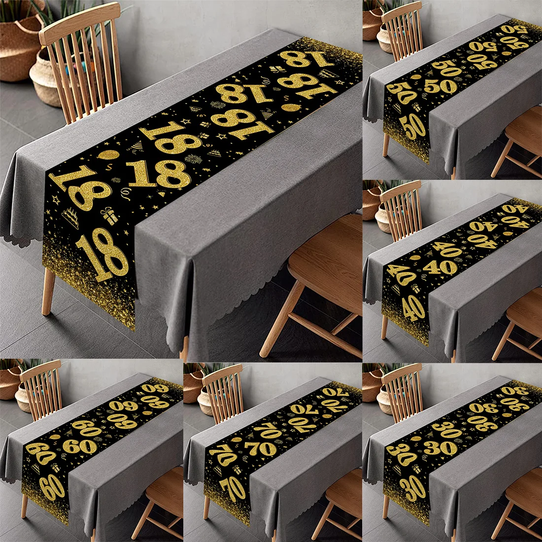 1pc Black Golden Happy Birthday Polyester Table Runner Party Table Cover For Indoor/Outdoor Birthday Party Dining Room Decor