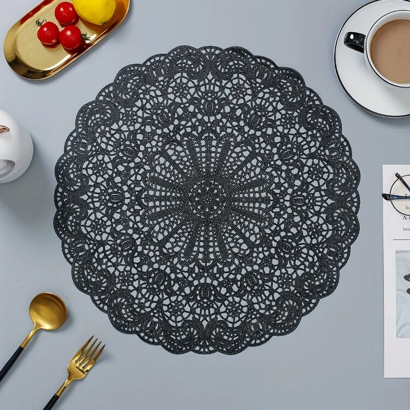 4pcs Placemat Circular Cutout Lace Table Mat Kitchen Decor Dinner Table Accessories Heatproof Bowl Plate Protector