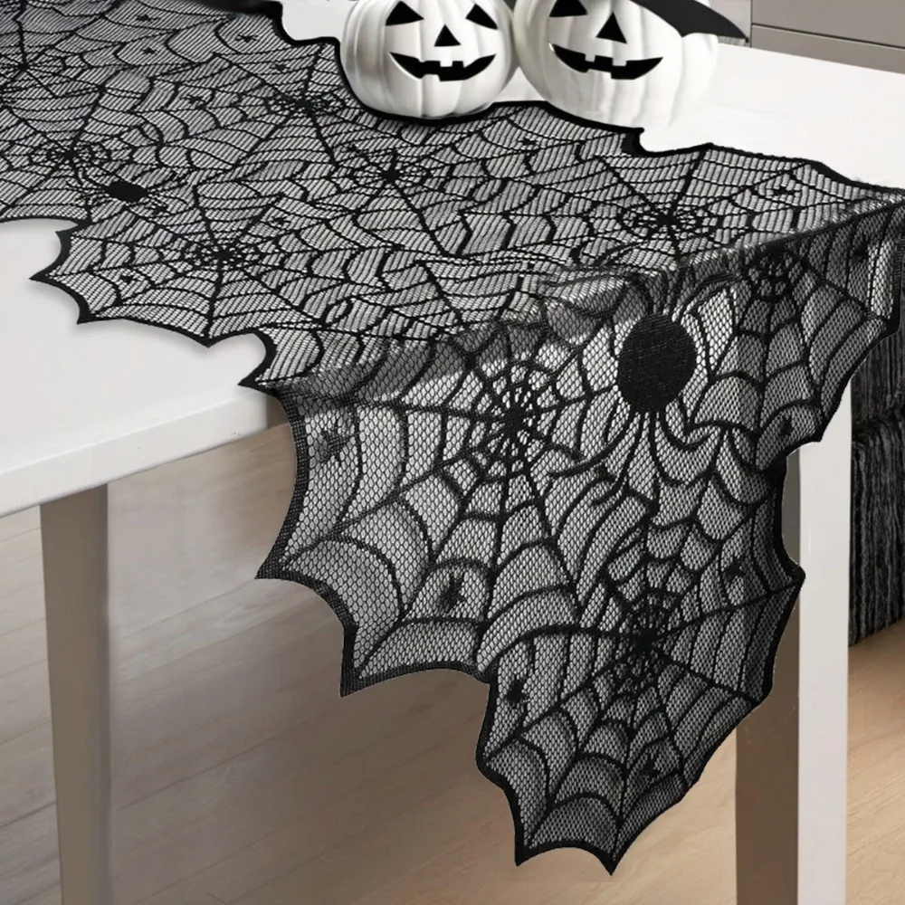 Halloween Lace Table Runner Black Spider Web Tablecloth Fireplace Cover Mantel Halloween Decoration 2024 Home Party Cloth Cover  Read more