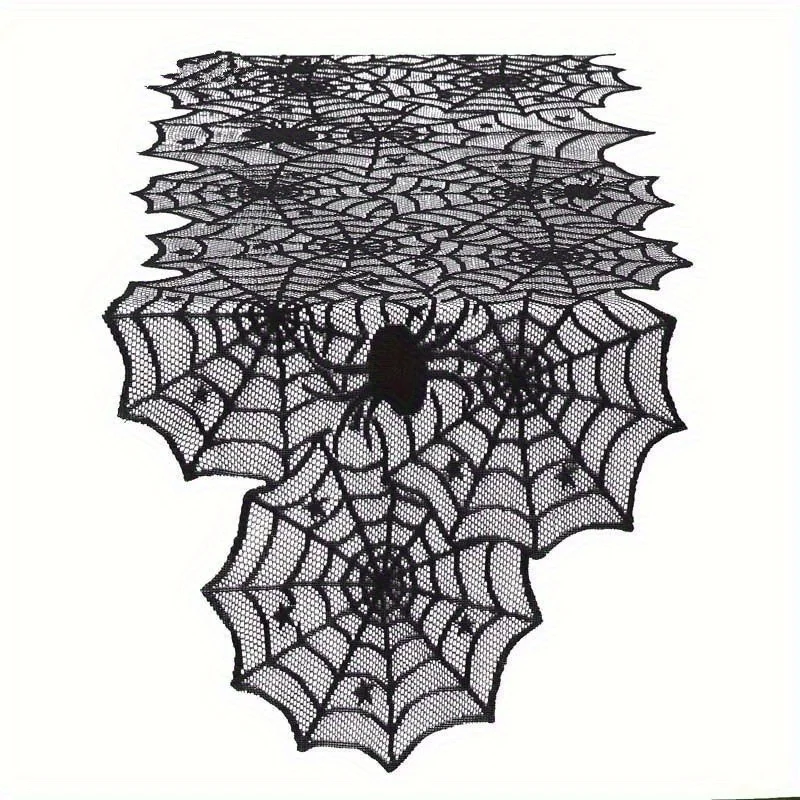 1Pc Black Lace Spider Web Tablecloth Halloween Party Gift Home Dining Decoration Ghost Festival, Holiday Desktop Accessories
