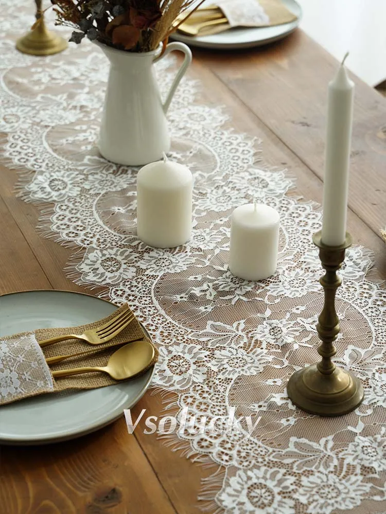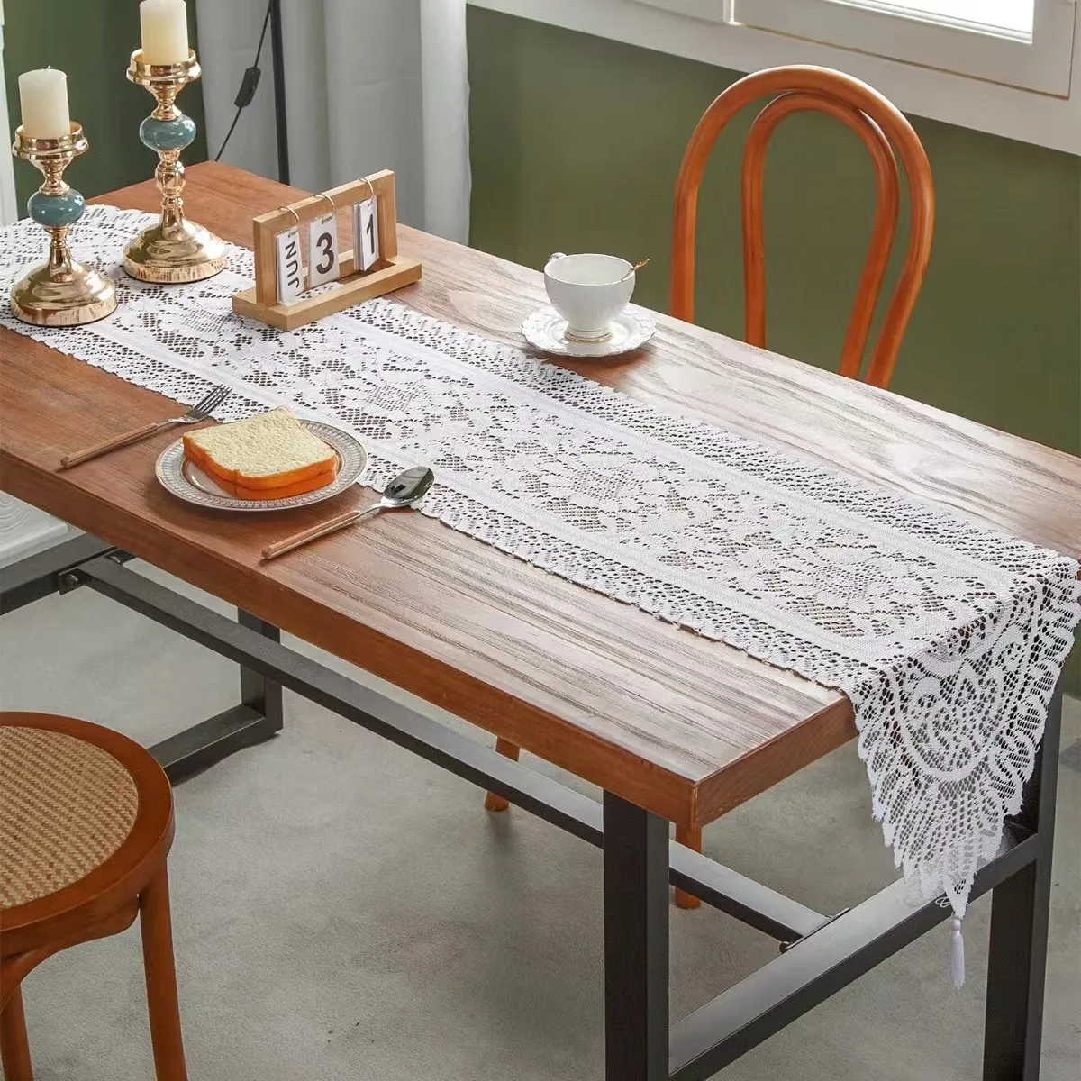 White Black Lace Table Runner Floral Table Cloth Wedding Decoration Home Textile Baby Shower Boho Festive Party Supply 35X300CM