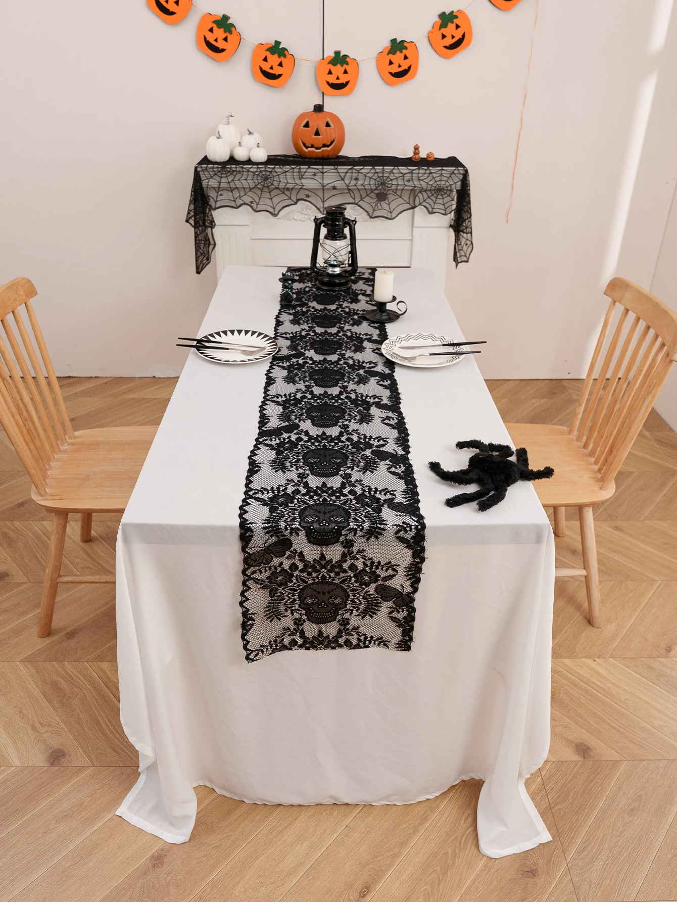 Halloween Skeleton Lace Table Runner for Living Room Kitchen Dining Table Terror Atmosphere Festival Dark Decorations