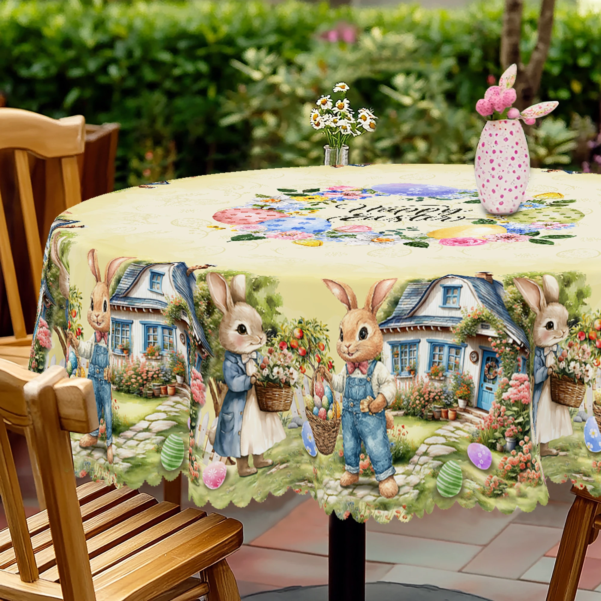 1 Easter Round Tablecloth, 5 Sizes Available, Easter Bunny Egg Printed Square Tablecloth, Edge Embossing Process, Spring Garden Tablecloth Decoration, Tablecloth for Daily Home Kitchen, Terrace,