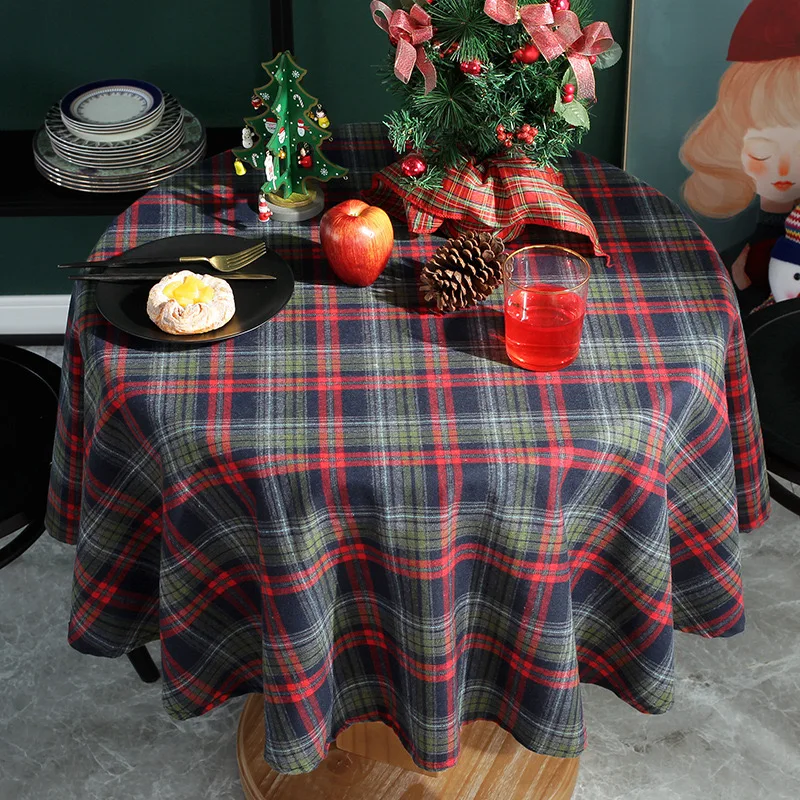Christmas Decoration Round Tablecloth Plaid Table Cover for New Year Family Gathering Restaurant Party Dinner Home Decoration