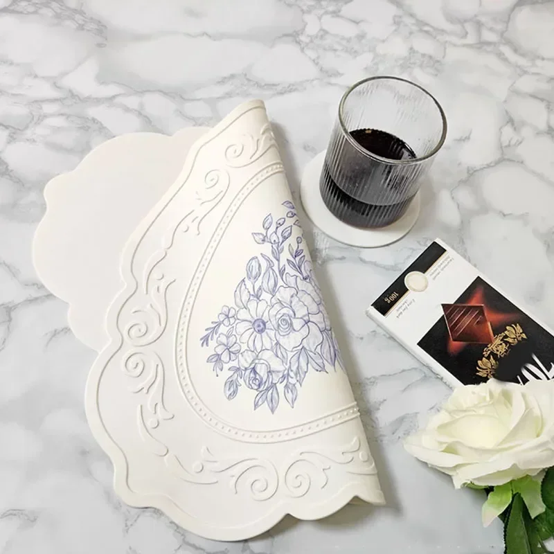 Silicone Oval Round Placemat Retro Pattern Coffee Floral Pad Tableware Mats Waterproof Non-Slip Dinner Tableware Cup Coasters