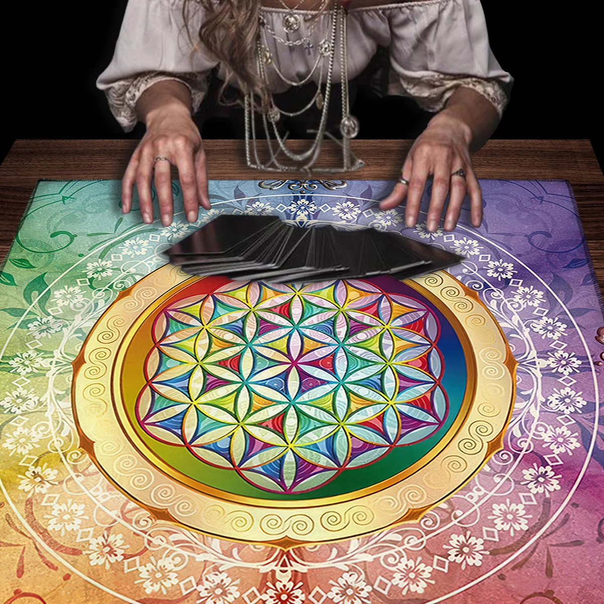 Mandala Flower of Life Altar Cloth Tarot Table Cloth Colorful Tarot Table Cover For Witchcraft Astrology Oracle Card Readings