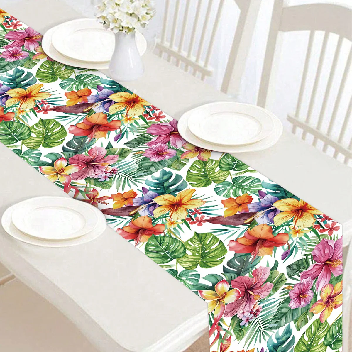 Summer Hawaiian Floral Table Runner Flamingo Birthday Party Decor Kids Aloha Hawaii Tropical Party Supplies Dining Table Decor