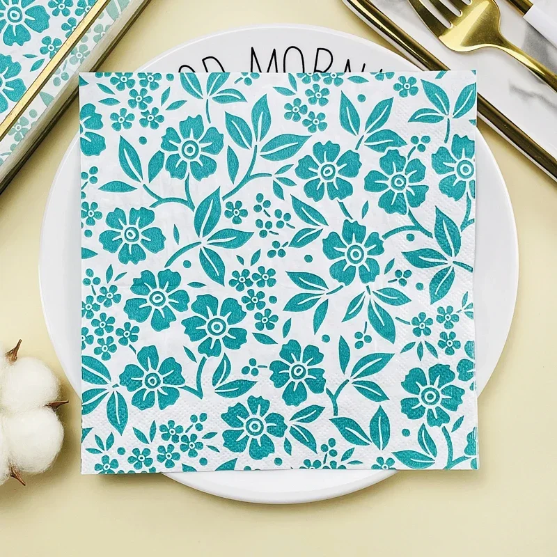 20pcs/Pac Printed Napkins Restaurant Desktop Table Setting Paper Placemats Green Fresh Flower Pattern Coloured Paper Napkins