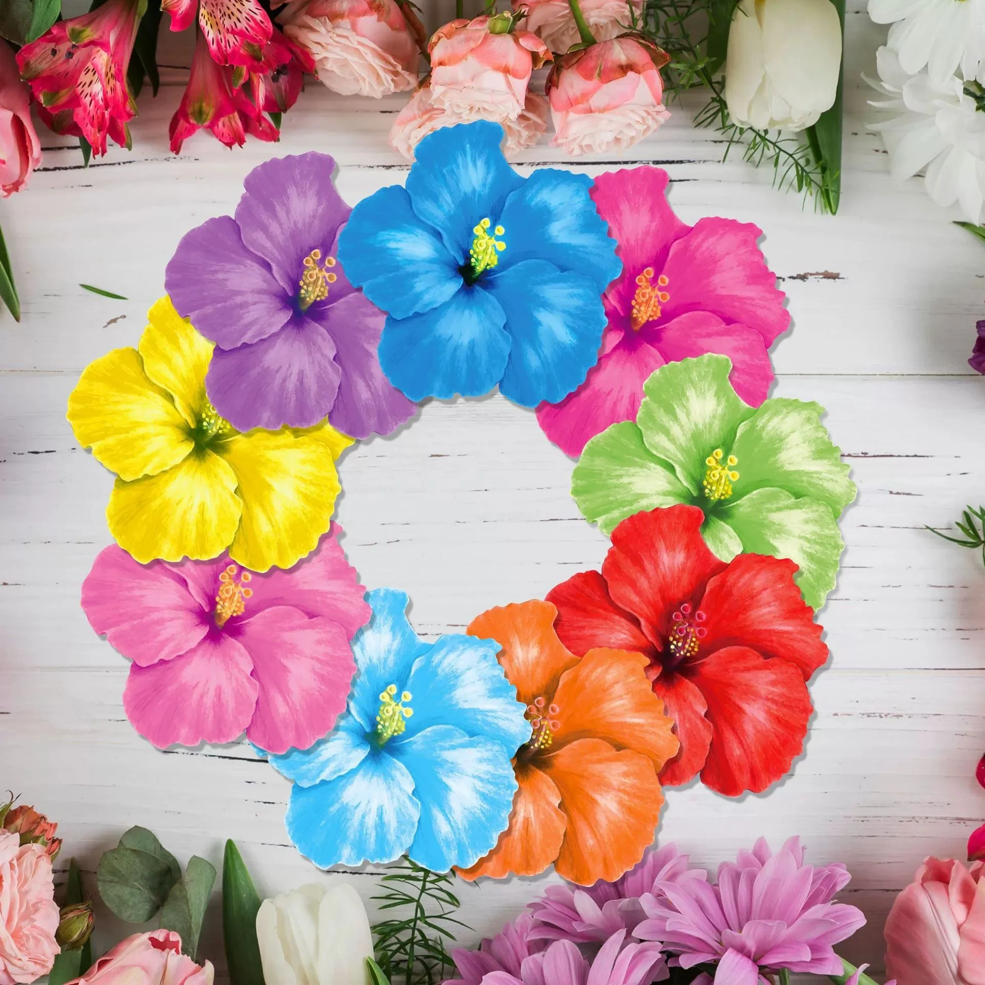 10Pcs Hawaiian Disposable Placemats Multicolor Hibiscus Flower Shaped Table Mats Summer Wedding Party Dining Table Decoration