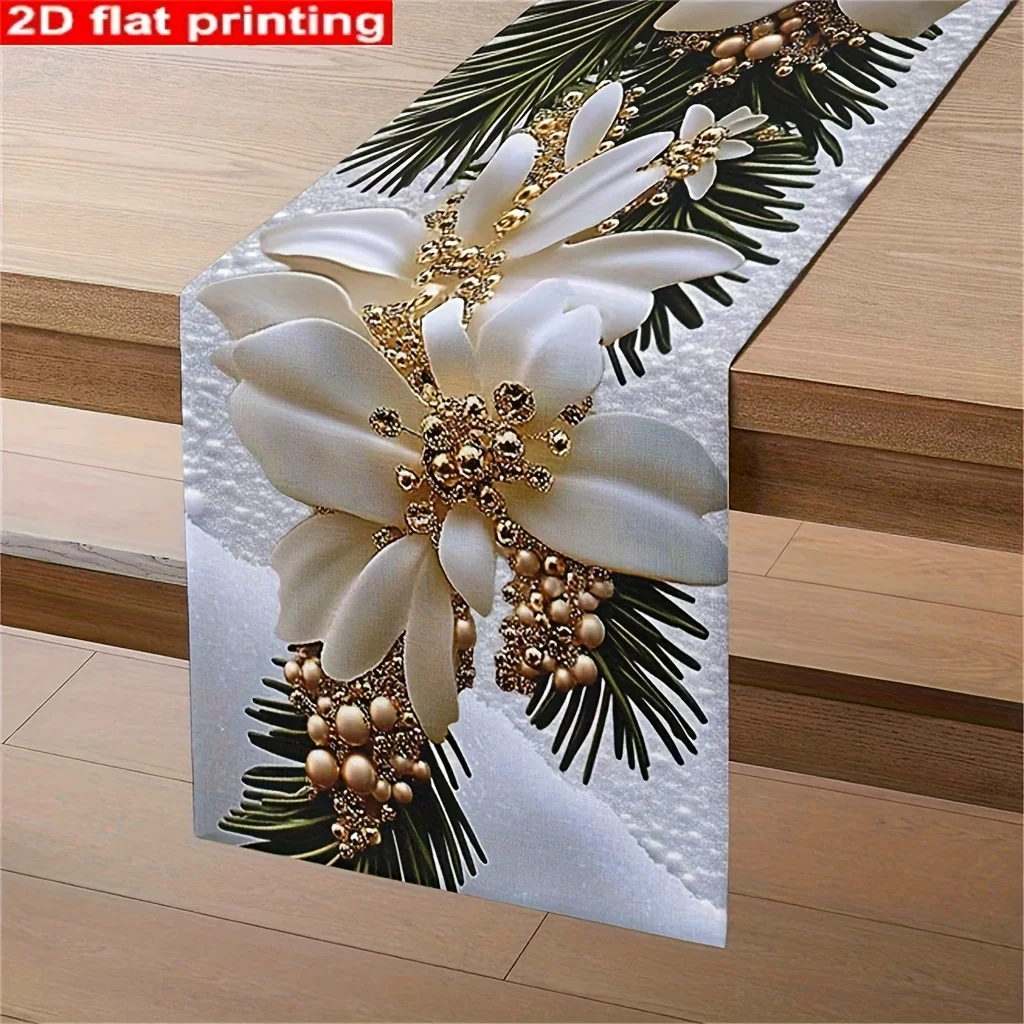 Christmas's Day White Floral Table Runner - Festive Wreath Print, Perfect for Home Decor & New Year Gifts
