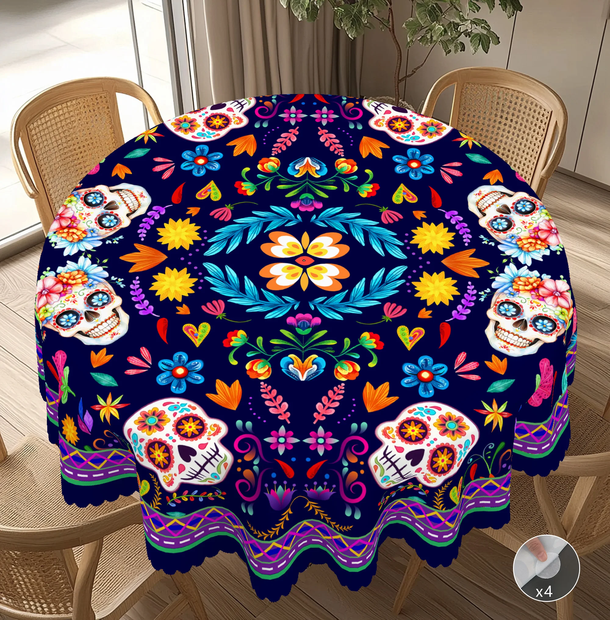 1 Piece of Mexican Day of the Dead, Five-Section Carnival Celebration Printed Tablecloth, Colorful Skull, Mexican Flower Pattern Decoration, Suitable for Mexican Carnival Holiday Party Decoration,