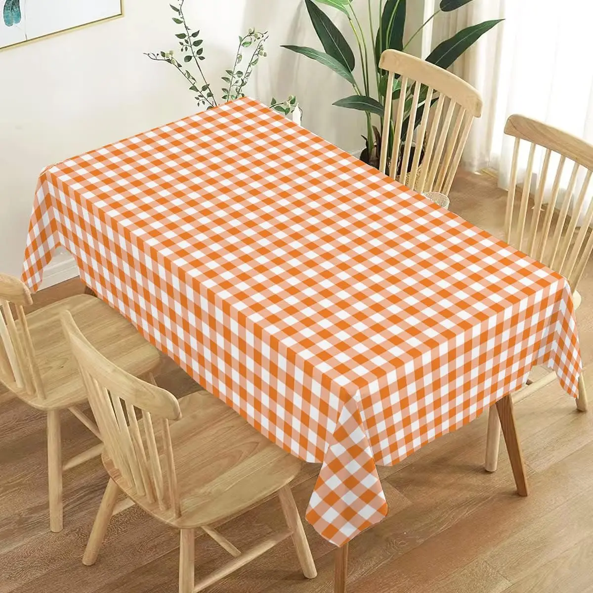 Fall Thanksgiving Orange Buffalo Check Waterproof Tablecloth Table Decor Reusable Kitchen Dining Tablecloth Holiday Party Decor