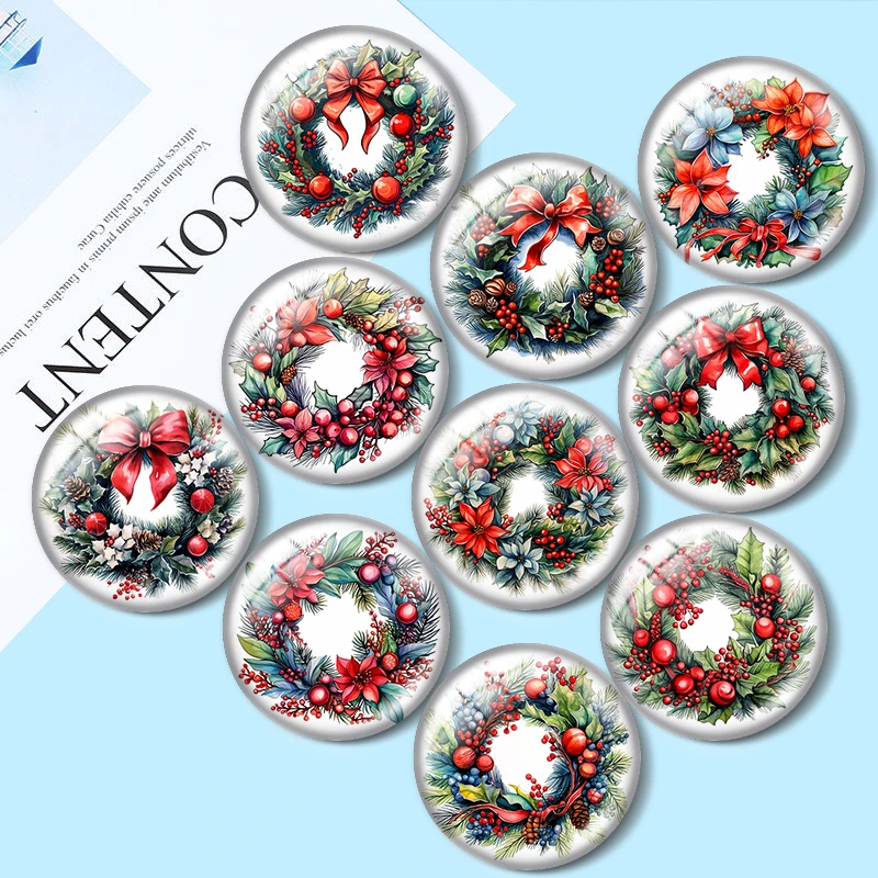 Christmas Wreath 10pcs 12mm/18mm/20mm/25mm Round photo glass cabochon flat back Making findings for bracelets  Read more