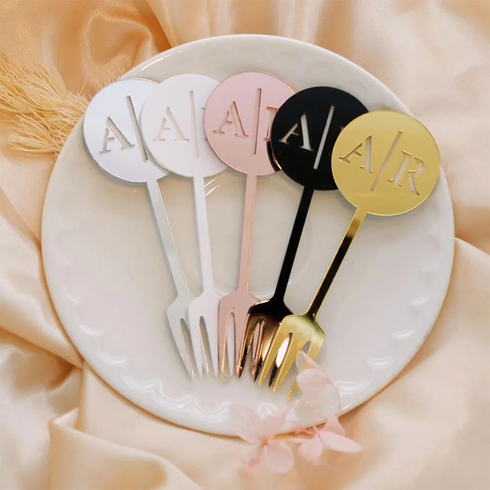 20/50/100pcs Personalized Acrylic Fruit Fork Custom Name Of Groom And Bride Fork 10CM With Wedding Party