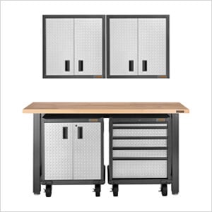 The Gladiator Premier Workbench, Base and Wall cabinet set is the best professional garage storage and organization system.