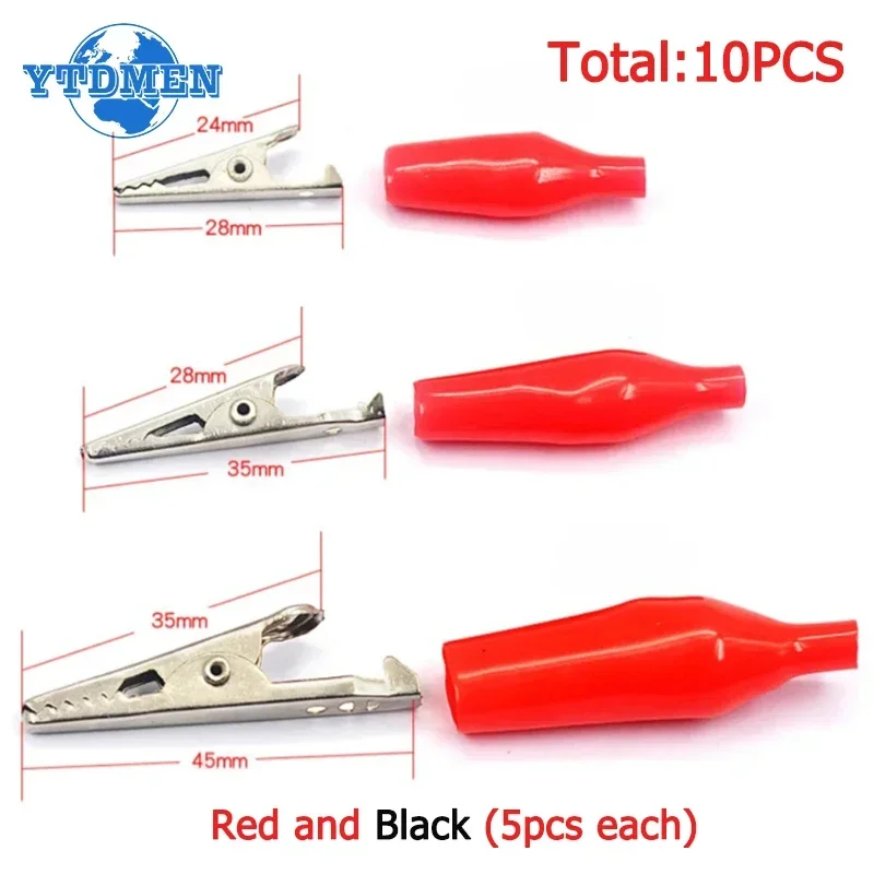 10PCS Alligator Clips Kit Insulation Metal Crocodile Clip 24*28mm 28*35mm 35*45mm DIY Electric Test Clip Red and Black 5pcs Each