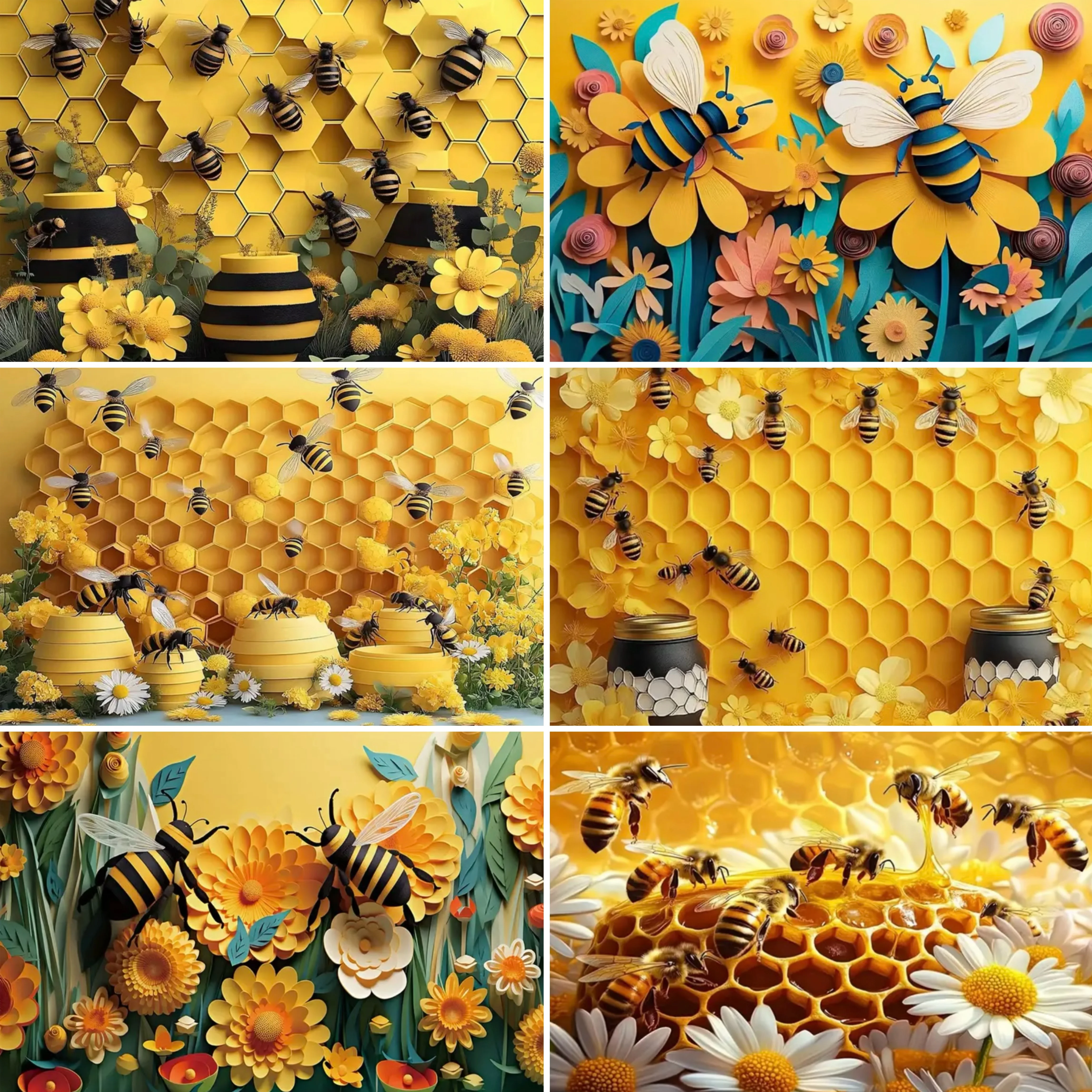 Bohemian Flower Bee Daisy Theme Background Sweet Honeycomb Wall Rural Wooden Board Kids Birthday Family Party Decor Background