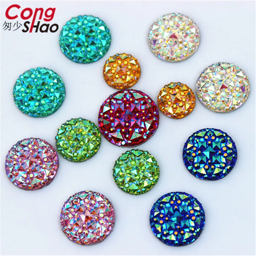 Cong Shao 50pcs 10/12/14/16mm Colorful Flatback Stones And Crystals AB Resin Round Rhinestone Trim DIY Wedding Dress Beads WC32