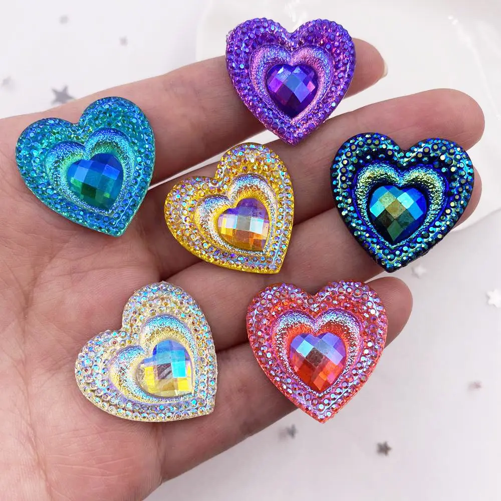 12pcs 25mm Heart AB Black Resin Peacock eye Gem Flatback Rhinestone Ornament Crystals Applique Wedding DIY Scrapbook