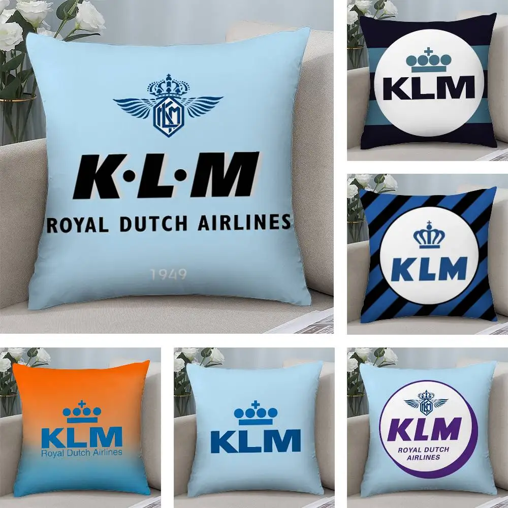 Netherlands K-Klm R-Royal Dutch Airlines Pillow Case Plush Fabric Soft Double Sided Print Sofa Cushion Cover Throw Pillow Covers