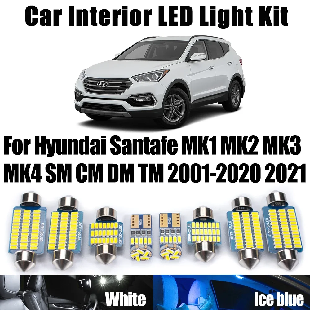 Car LED Interior Ceiling Reading Dome Vanity Mirror Light Kit For Hyundai Santafe Santa Fe MK1 MK2 MK3 MK4 SM CM DM TM 2001-2021