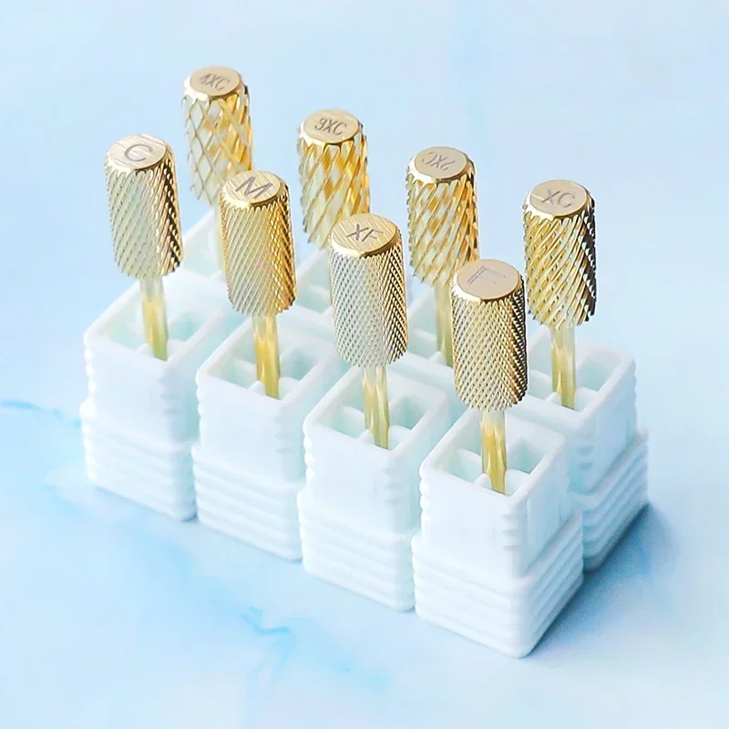 Gold Carbide Nail Drill Bits Milling Cutter large Barrel Pro Reversed Durable Granding Polishing Tools Accessories 4XC