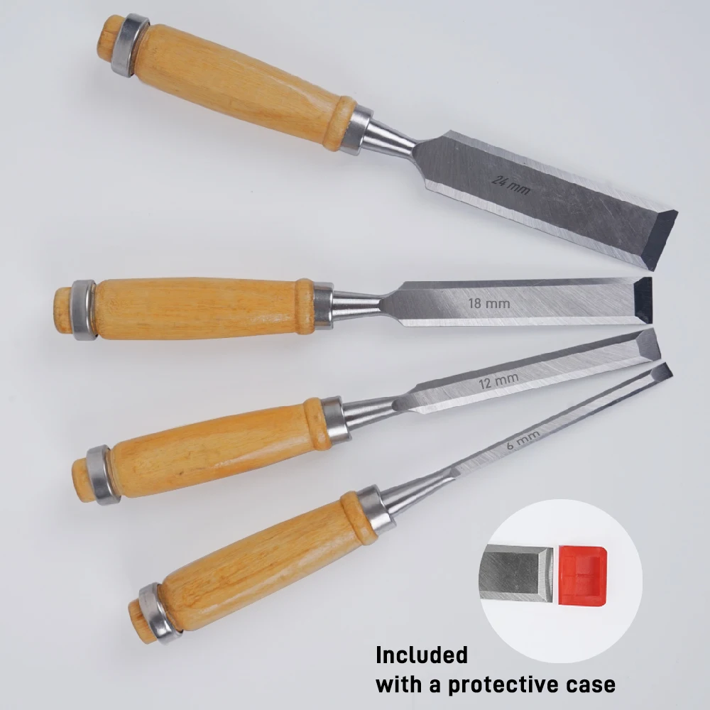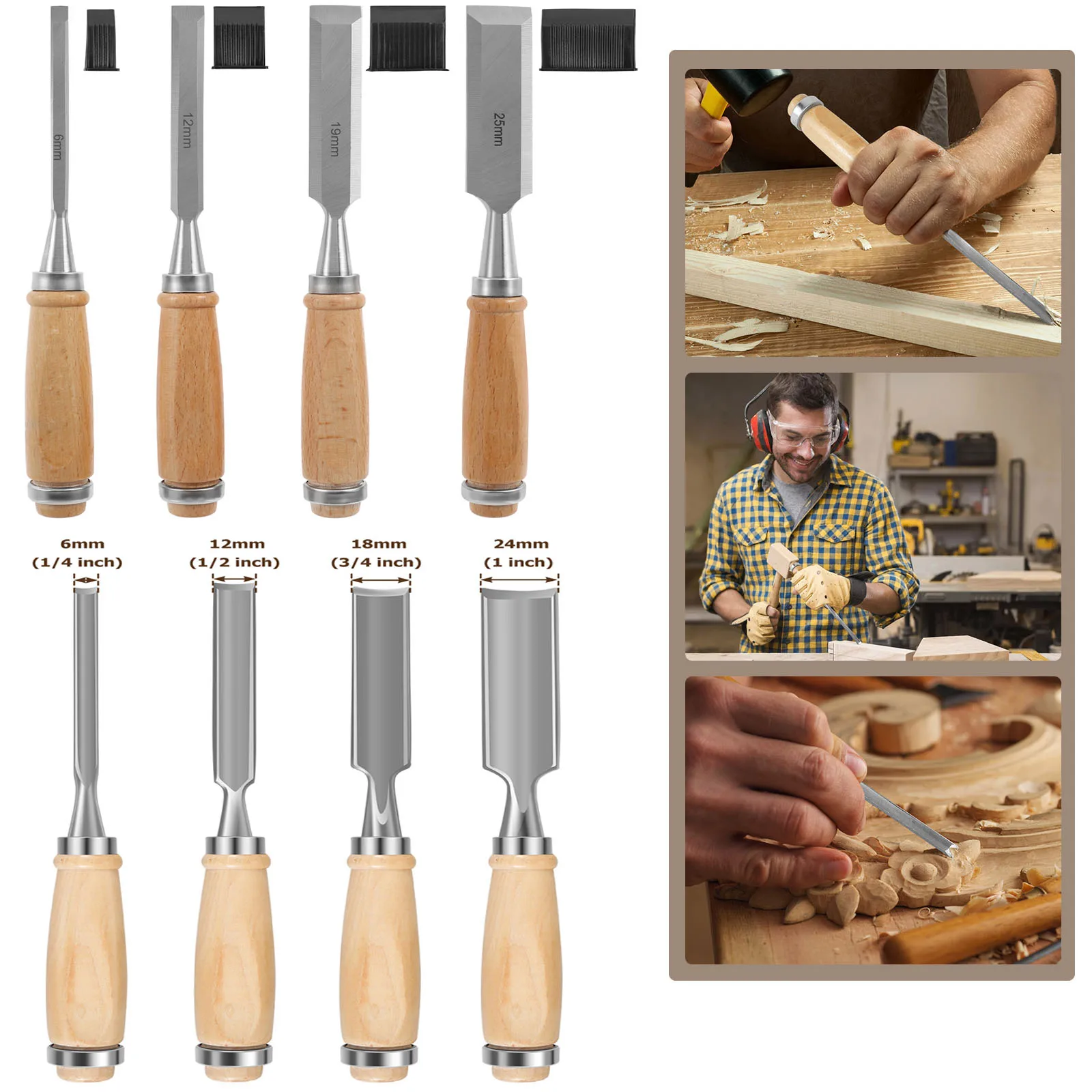 4Pcs/Set 8/12/18/24mm Wood Carving Chisel Woodworking Carving Hand Chisels DIY Tool Kit Steel Blade  Read more