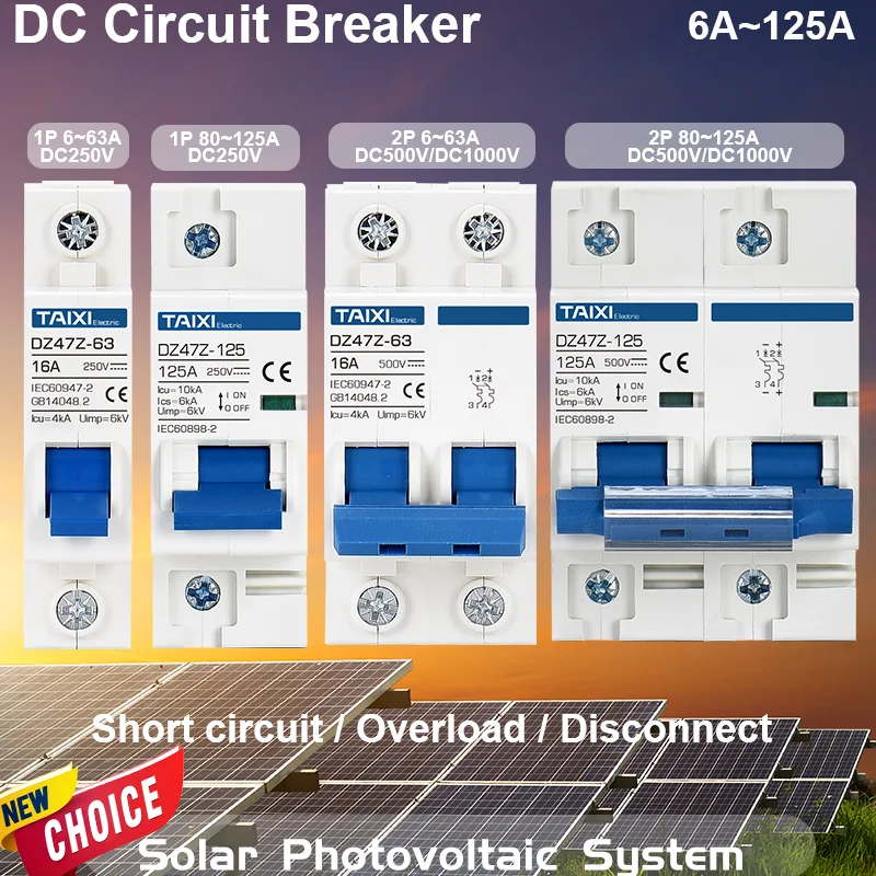 TAIXI Solar Photovoltaic DC Circuit Breaker Disconnect Switch MCB DC250V 500V 1000V 16A 32A 40A 50A 63A 80A 100A 125A  Read more