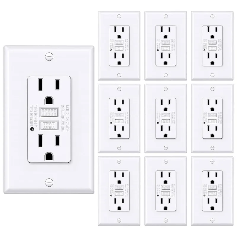 GFCI Outlet 15 Amp, GFI Receptacle Outlet with LED Indicator, Ground Fault Circuit Interrupter, Non-Tamper-Resistant, Wa